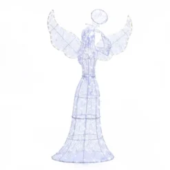 LuxenHome 5Ft Angel Playing Gold Trumpet Outdoor Holiday Decoration With Lights White, Sliver, Gold