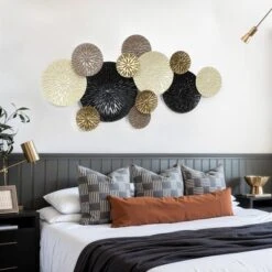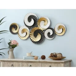 LuxenHome Modern Multi-Color Abstract Metal Wall Art, 45.7″ W Contemporary Home Decor Off-White