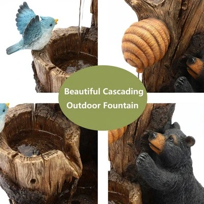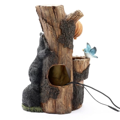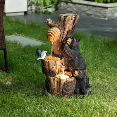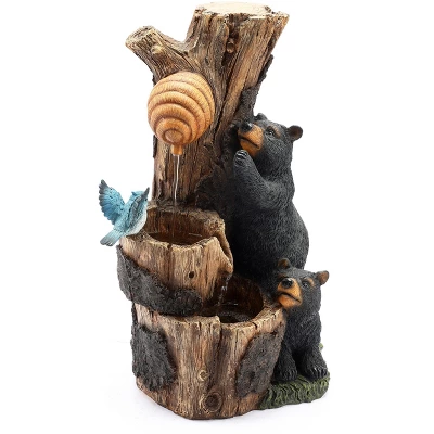 Don’t miss out on this adorable bear fountain! The country-style sculpture features two bears looking for honey. The tree has a beehive, and water is pouring out of it. The LED light is placed just below the beehive giving the cascading water a honeyed glow. Using poly resin material, the handcrafted fountain is a quality piece to be admired for many seasons. The fountain includes an electrical pump that recirculates the water and powers the LED lights. The charming fountain is a beautiful accent for your outdoor living space or lawn.
