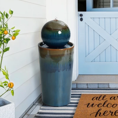 - Elegant Ceramic Design: Featuring a stunning glazed blue finish with a sleek spherical top, adds a touch of sophistication to any garden.