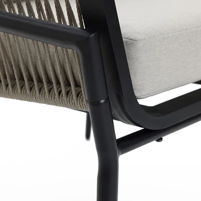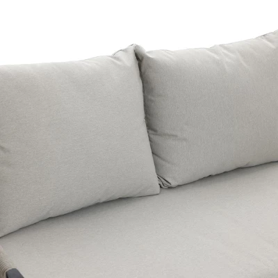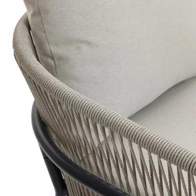 With its elegant design and excellent quality, this outdoor aluminum and PE rope sofa set brings an unparalleled, comfortable experience to your outdoor space. The loveseat and two single chairs include cushions made with 230g Olefin fabric, filled with sponge and PP cotton, ensuring a soft and comfortable seating experience. The coffee table’s top has aluminum slats, carefully treated with a brushing process, which is aesthetically pleasing, durable, and easy to clean. The entire set is designed with a knock-down concept, making it easy to assemble and disassemble, allowing you to arrange it according to your needs. Whether it’s a family gathering or personal leisure, this patio set can meet your needs while adding a touch of comfort and elegance to your outdoor life.