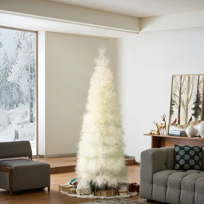 LuxenHome 6Ft Holiday Slim Artificial Pampas Grass Tree In Natural Ivory Beige