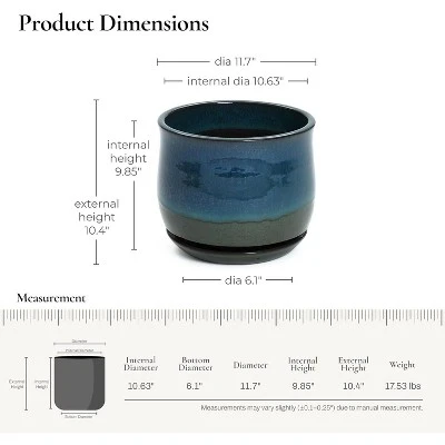 This round decorative ceramic planter features a beautiful blend of blue and green colors with a classic flowing glaze effect, combining modern simplicity with vintage style to showcase its unique artistic charm. Made from high-quality ceramic material, the planter is sturdy and durable. Its smooth and delicate finish gives it an elegant appearance. The planter includes a matching ceramic tray at the bottom, which effectively prevents water from spilling and helps keep your home clean. This unified color design enhances the overall aesthetic. Additionally, the planter has drainage holes at the bottom to allow excess water to escape, ensuring the healthy growth of your plants. Its moderate size makes it perfect for placement on a porch or in a living room, adding a vibrant touch to any space.