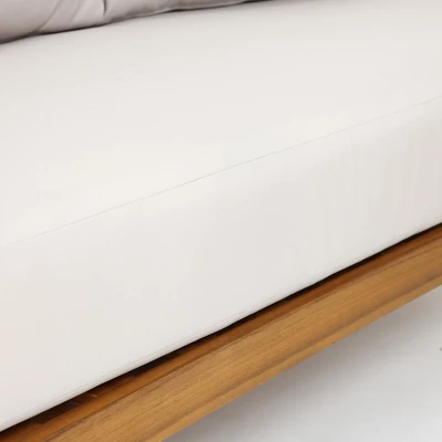 This Outdoor Acacia Wood with Rope Sides Club-Style Loveseat with Cushions and Coffee Table Set to your outdoor living with its unique design and practical performance. The selected outdoor acacia wood is not only sturdy and durable but also perfectly blends with the natural environment, creating a relaxed and pleasant atmosphere. The rope-arm design not only adds a touch of retro charm but also provides extra comfort. The soft cushions come equipped to keep your seats dry and comfortable from minor liquid spills during daily use. The coffee table top is made of closely spaced slats, enhancing load-bearing capacity, combined with rounded corners for added safety. Moreover, the loveseat and coffee table can be arranged according to your preferences and space requirements, creating a cozy and practical leisure corner whether on the patio, in the garden, or on the deck. Although the cushions have some water-resistant properties, we still recommend you to put away the cushions in rainy days to protect the materials and extend their service life. This set of seats is not only easy to maintain but also its natural materials and elegant design will undoubtedly become a highlight of your outdoor space.