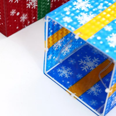 These festive gift boxes are perfect for adding holiday charm to your home! With colorful wrapping and lovely bows tied with ribbons, these presents will surely bring the Christmas spirit to your home. Illuminating your place with these red, green, and blue gift boxes, each adorned with 60 LED lights powered by a single UL-approved plug-in, will create a warm and welcoming atmosphere for your loved ones. Whether placed on your porch or inside your home, these gift boxes are also great for decorations under the tree and in the office. Get ready to light up your holiday season with these charming decorations!