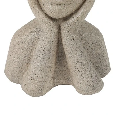This unique, happy person bust planter makes a great decoration for your faux and real flowers and plants. This decorative statue bust style planter can be styled with a fun plant, real or faux, depending on the sunlight in your home. It can also be a decorative piece on its own without a plant. The statue planter is an artistic bust with hands framing the face, and the top of the head is a planter. Place the blissful bust planter on the bookcase in your office or family room, or spruce up your porch with its unique charm. Crafted using weather and UV-resistant magnesium oxide material and finished in a speckled beige finish, the bust planter is ready for outdoor living. It includes a drainage hole to help prevent over-watering your plants. It also includes a drainage plug for your convenience. Features:Â 1-Piece person bust planter statue that makes a fun and unique addition to your indoor and outdoor space. . . The bust planter is weather, UV, and rust resistant, and is easy to maintain – simply rinse with water and wipe with a soft cloth between plantings. The planter is suitable for display indoors and outdoors; for longevity, do not allow the planter to sit in standing water or snow as this may cause damage to the bottom of the statue planter. Add your favorite plant to the statue planter pot and give it as a housewarming or holiday gift to your family or friends. . Each planter pot also includes a drainage plug for convenience and is ideal when displaying artificial plants or faux floral arrangements and bouquets. . To clean, gently rinse with water and use a soft cloth to wash your planter. Rinse with clean water and allow air to dry or dry with a clean cloth. Place the planter on flat ground or surface. It is best if the planter is not left in standing water or snow for long periods. Standing water or snow may cause damage to the base of your planter. Planter specifications:Â Statue planter size: 14.13″ H x 10.25″ W x 6.88″ DÂ Statue planter weight: 4.2 lbs. Statue planter capacity (ounces): 255..