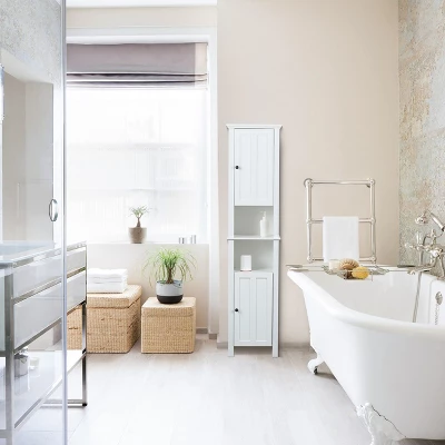 - Convenient storage: the tall linen cabinet features a door with 2 open shelves where you can keep toilet paper, toiletries, or hand towels within reach