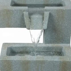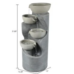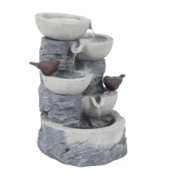 LuxenHome Modern Gray Cement Tiered Bowls Outdoor Fountain With Lights