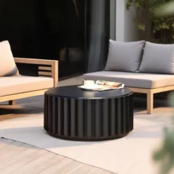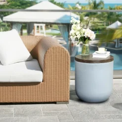 LuxenHome Gray Cement Indoor Outdoor Side Table With Storage