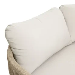 LuxenHome Outdoor Acacia Wood Rope Back Loveseat With Cushions And Coffee Table Set