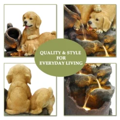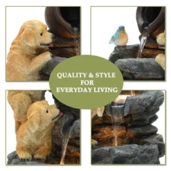 LuxenHome 25.8″ H Sandstone Resin Regal Lion Head Floor Outdoor Water Fountain With Lights Brown